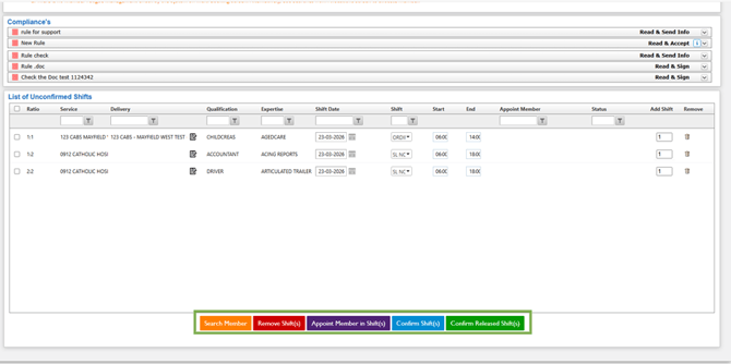 - Click Add Shift(s) to list. All the shifts will be added to the list of Unconfirmed Shifts.