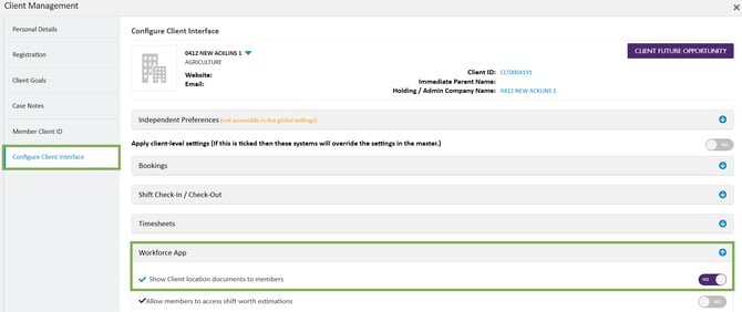 - Enable the Show client location documents to members toggle by setting it to Yes.