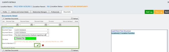 - To show the Location documents, enabled the settings under Client Management.