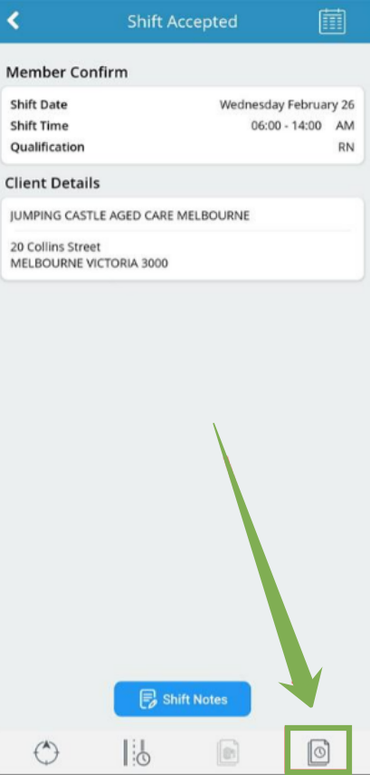 - In the members app, documents are shown under the following icons when they are selected on a shift.