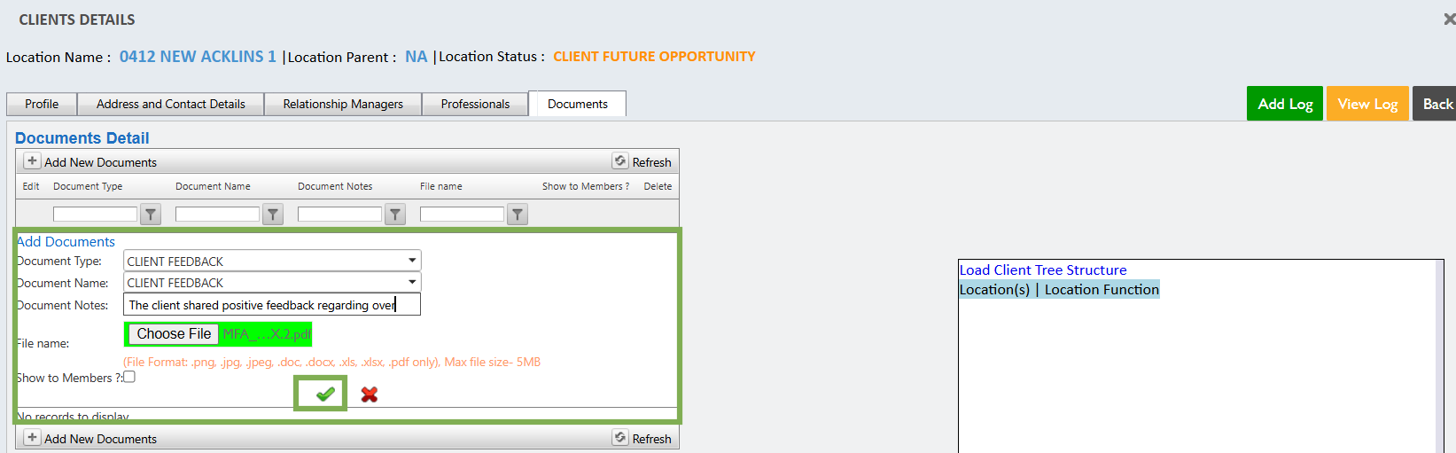 - Enable the Show client location documents to members toggle by setting it to Yes.