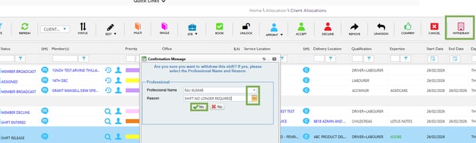 Recommend Reading: How you can withdraw a shift from the calendar view, click here: Withdraw - Shift Action Bar.