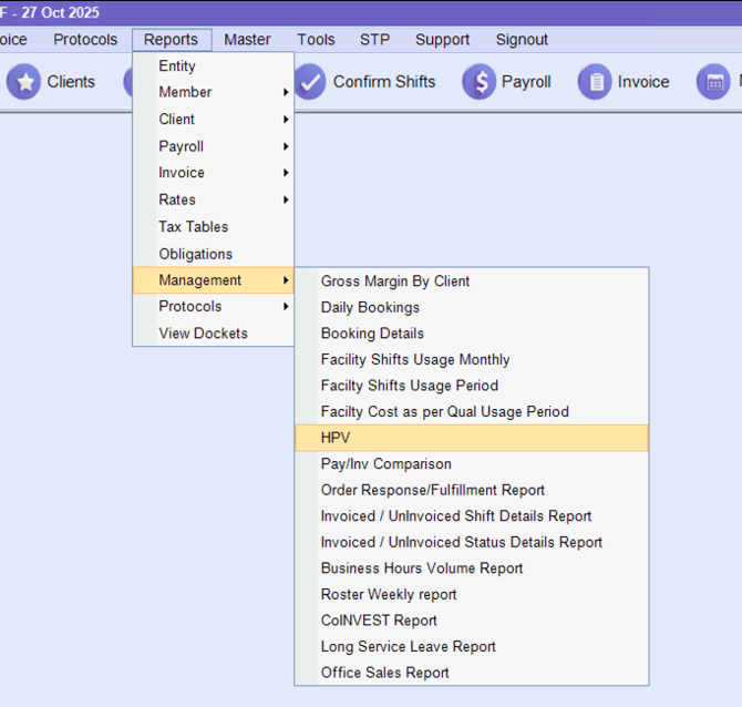 Reports > Management > HPV
