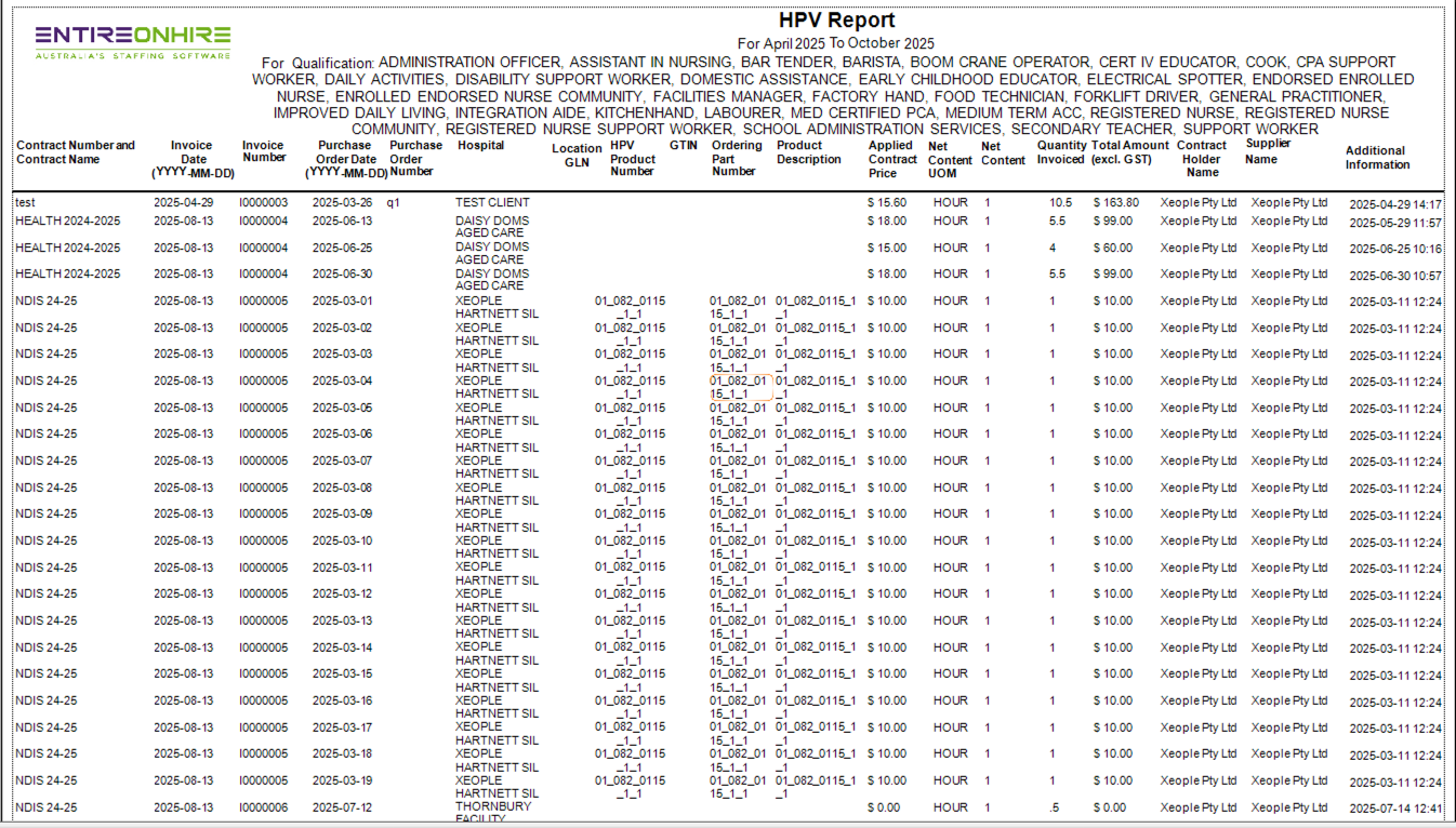 The HPV report was specifically built to accommodate the Health Purchasing Victoria (HPV) procurements.
