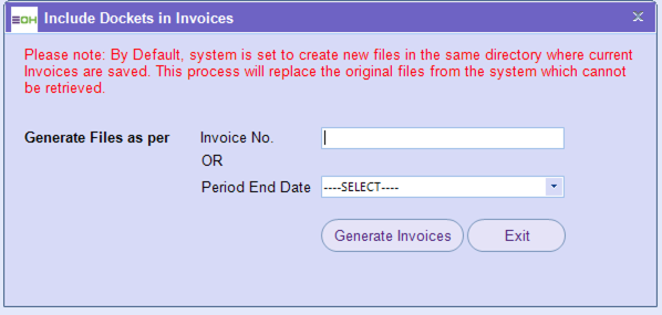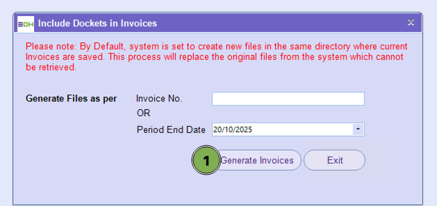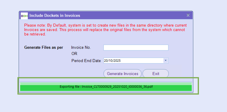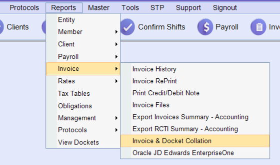 Please note: Collating the dockets with an invoice is irreversible and once collated it will override the original invoice file.