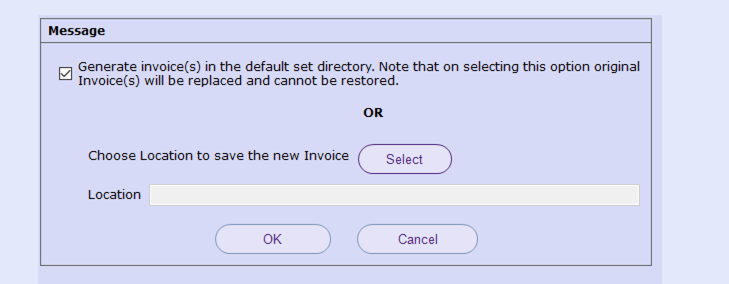 Choose either the Invoice No or Period Ending date. We suggest only running this report for separate invoices.
