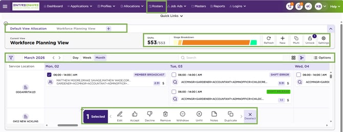 Step 11. Calendar – Apply Filter: Controls which shifts appear on the Allocations screen. It allows you to refine the displayed shift data based on selected criteria and view only what is relevant to you.