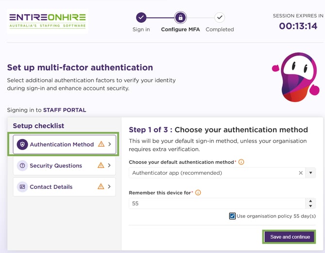 Step 2. 2FA Overview and Navigation: When your administrator enables 2FA, you will be prompted to begin the authentication setup the first time you sign in to the Staff Portal.