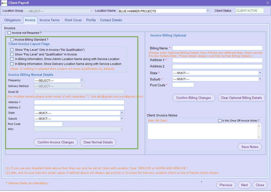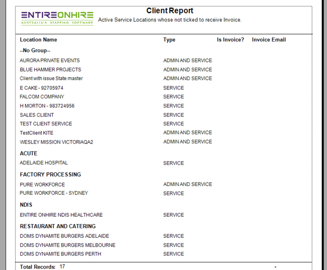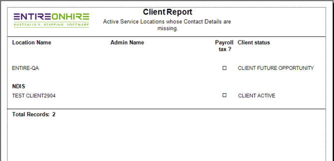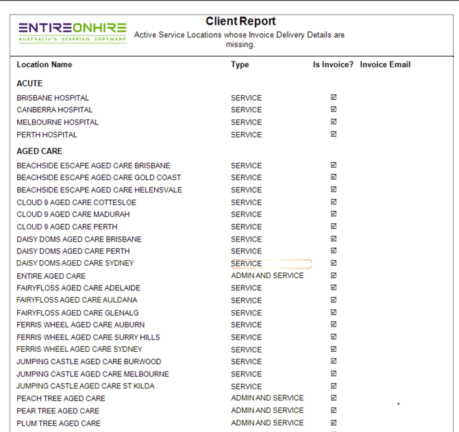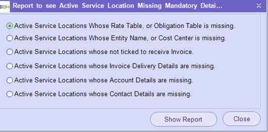 This report allows users to find Service locations that are missing Mandatory details within their profile.