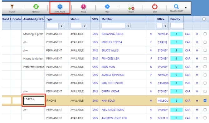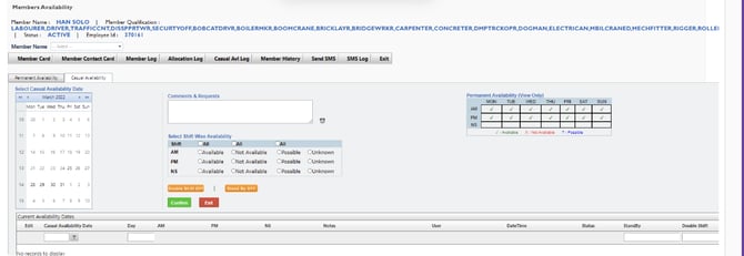 Availability notes can be left by the Member or a User if the Member has a Casual Availability. For example, you can note that the Member has selected that they can work a PM but they can only start after 4pm, etc. The reason you can only leave a note next to a Casual Member is because their availability is constantly changing unlike a Member with Permanent Availability. |