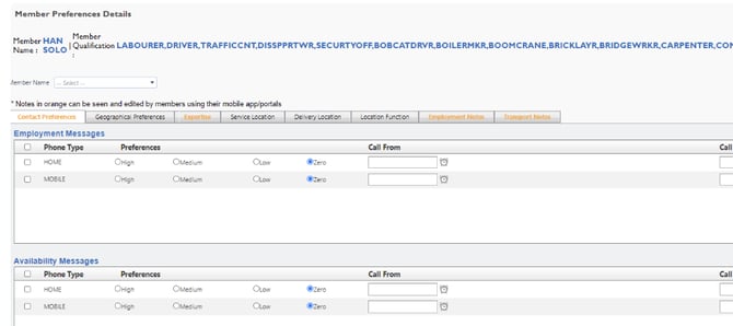 Employment Notes (can be seen and edited by members using their mobile app/portals)