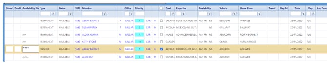 This allows you to select a member with casual availability and update their availability notes, once you update select the icon which will save your notes.