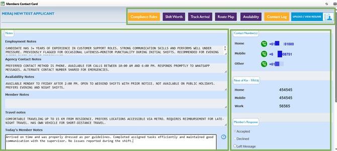 The Member Contact Card gives you everything you need to know about a member at a glance. It brings key details and common actions into one place so you can quickly connect with members, check important information, and manage shifts more easily.
