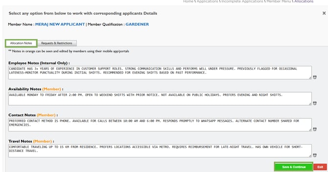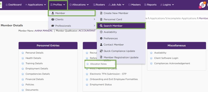 - To update Allocation Notes, open the member’s profile and navigate to Allocation Notes.