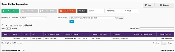 - Contact Log: This takes you to the member's contact log Contact Log.