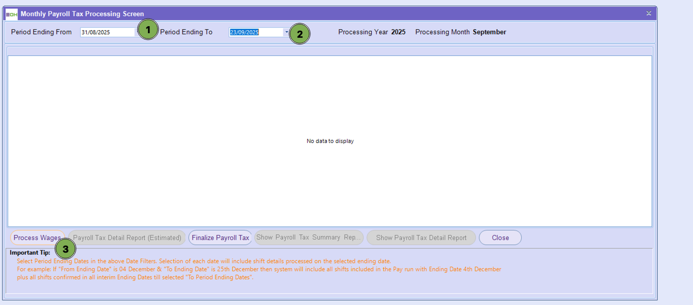 You will have a popup confirming you want to finalise the tax and then acknlwoegding you are unable to process this period again!