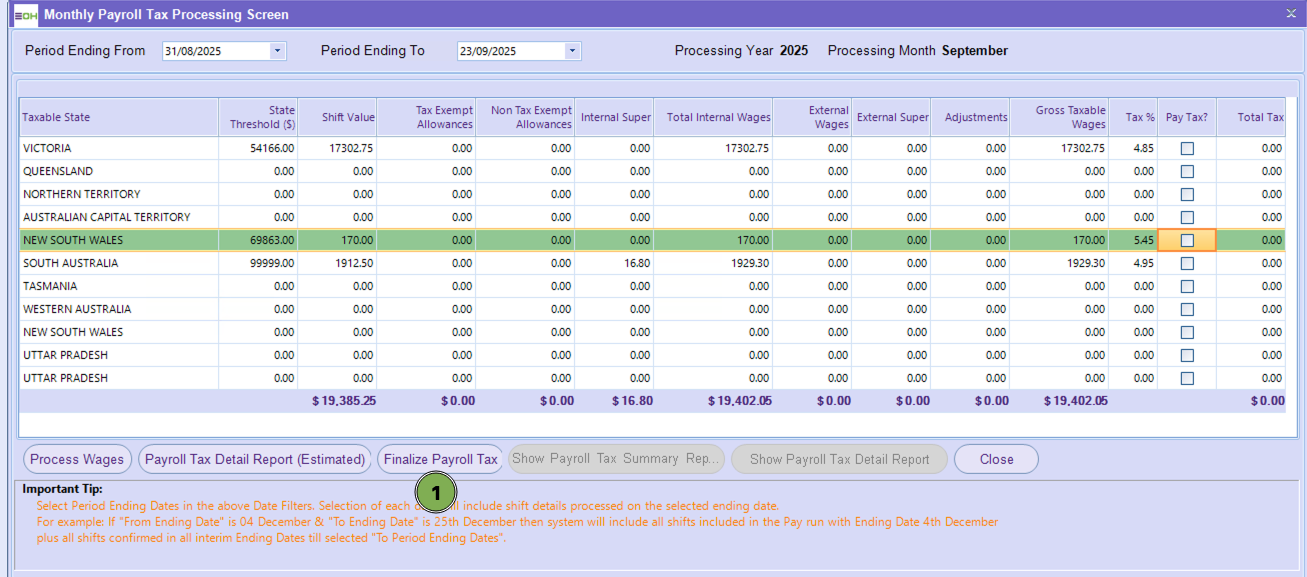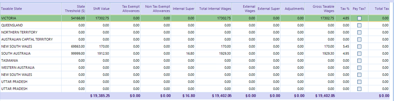 | Pay Tax? | Indicates whether payroll tax is payable for that state (based on thresholds and calculations). |