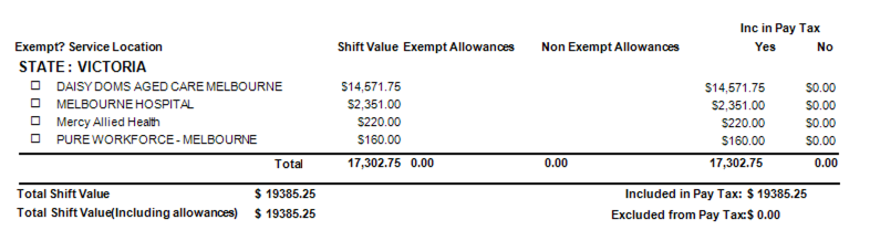 | Shift Value | The total value of shifts worked within that state, forming part of the gross taxable wages. |