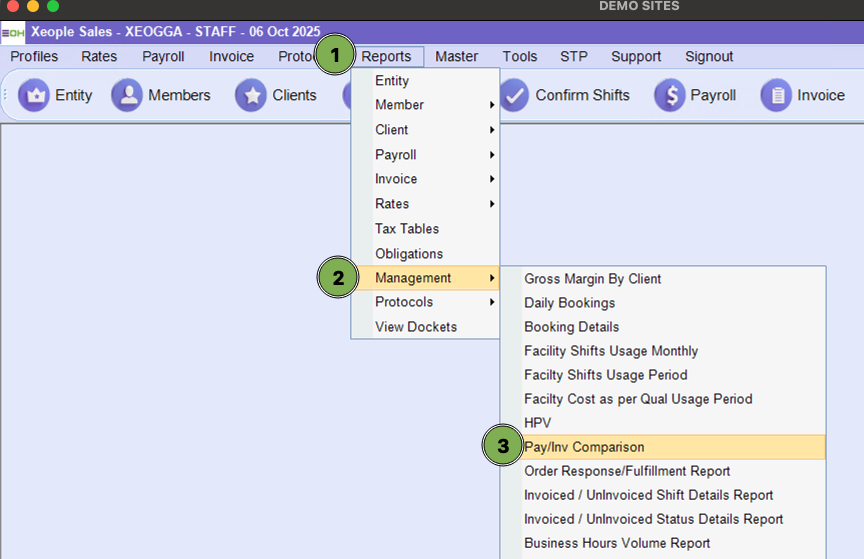 Reports > Management > Pay/Inv Comparison
