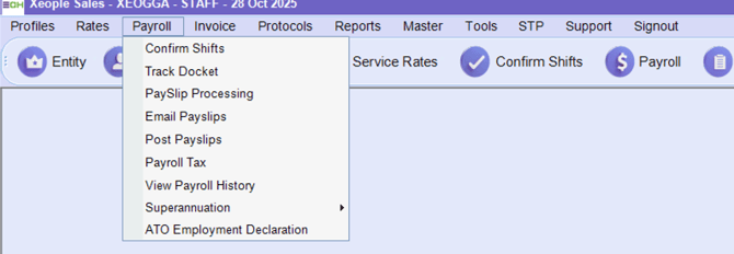 Payslip Processing - This is the same as selecing “Payroll” - For information on Payroll please review Process Pay Roll