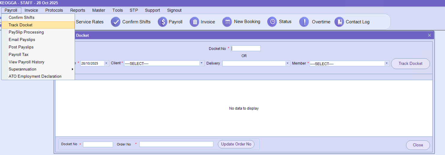 View Payroll History - This is where you can review the previous Payroll to export to excel, and email payslips to members or dockets to clients/members. For More Information - View Payroll History View Payroll History - This is where you can review the previous Payroll to export to excel, and email payslips to members or dockets to clients/members. For More Information - View Payroll History
