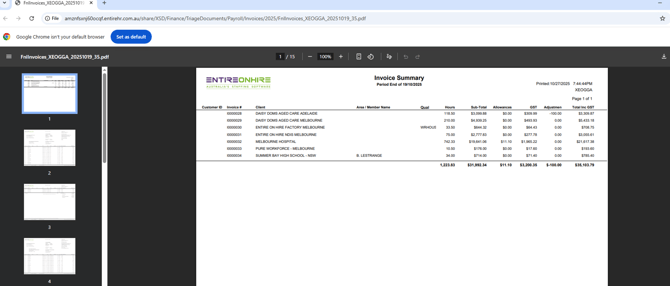 Once the files have been generated, It will open the pdf file with the Invoice Summary, Invoices and Timesheets.