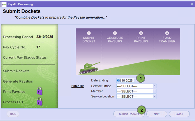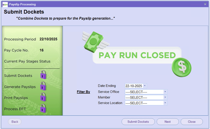 Then click on ‘Submit Dockets’ to complete the first step of the pay run.