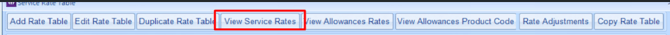 View Service Rates - Select this function to view all pay and charge rates within a particular rate table. Pay and charge rates can also be deleted in here.