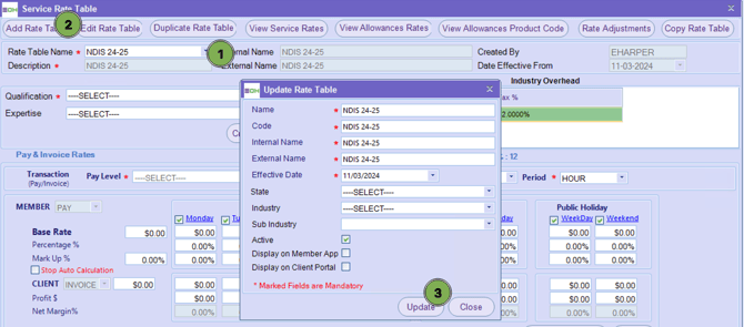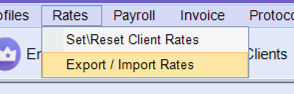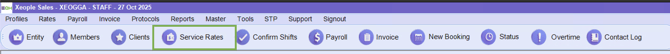 This information is then used to build your rate tables so everything is ready for go live however, it is important to know how to add new, edit existing as well as use the export / import function to make major changes to your pay and invoice rates. Access to rate tables is gained by using the Service Rates menu
