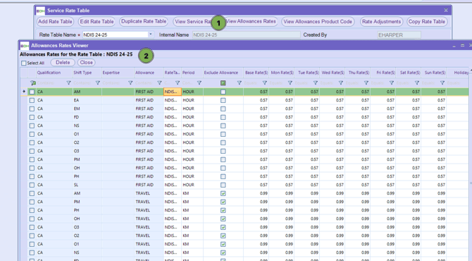 Please note: Allowances must have been created in the Master before they can be added to the rate table