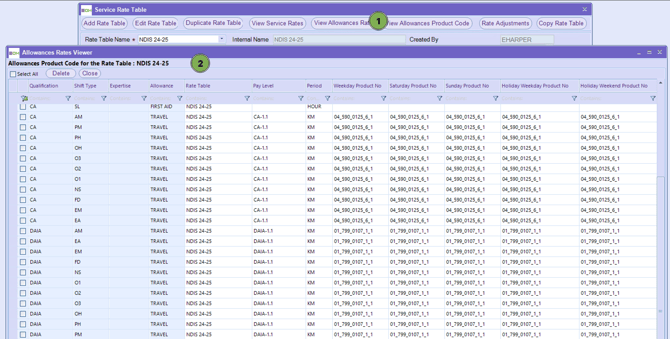 View Allocations Product Code - Select this function to view all allowance rates within a particular rate table. Allowance rates can also be deleted here.