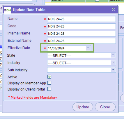 Even though the future rate table has been attached to the client, shifts / jobs for that client will not attract the rates within the future rate table if the effective date on the future rate table is greater than the current day.