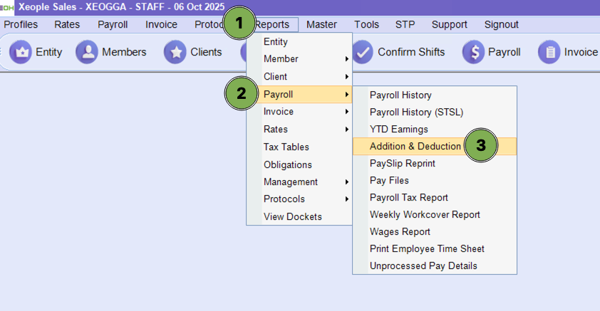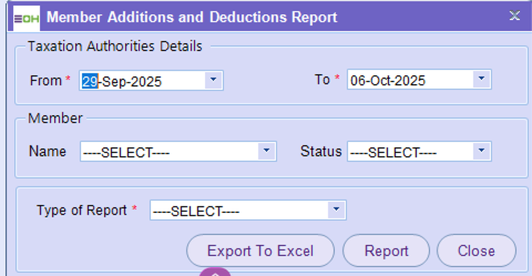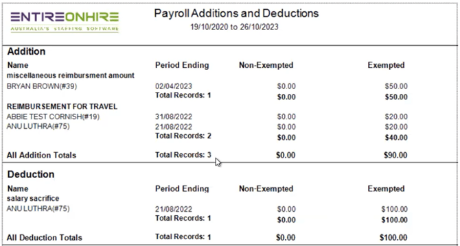 The Addition and Deduction report provides total figures of Additions and/or Deductions processed through payroll for each Member within the date period selected. You can choose to limit the data by Member and Member Employment Status.