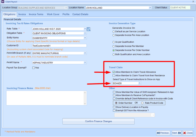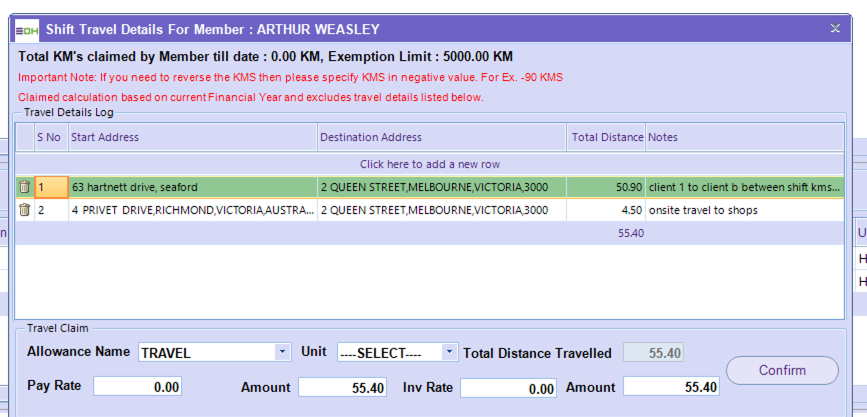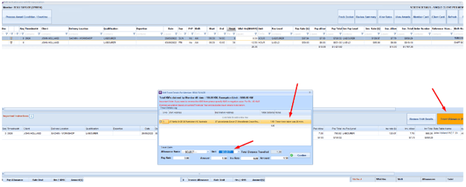 During the shift confirmation in the Finance module, the system will auto-notify the user to process the travel allowance on a shift due to the claim entered.
