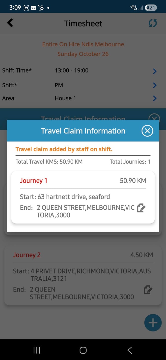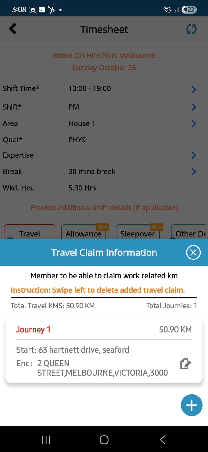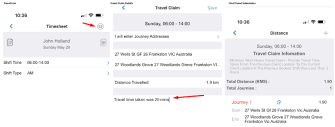 This icon is an optional feature that allows Members to submit a travel claim and may not be applicable to all shifts/locations. For further information on your Agency's policy for Travel Claims please contact the Help Centre details found in your App.