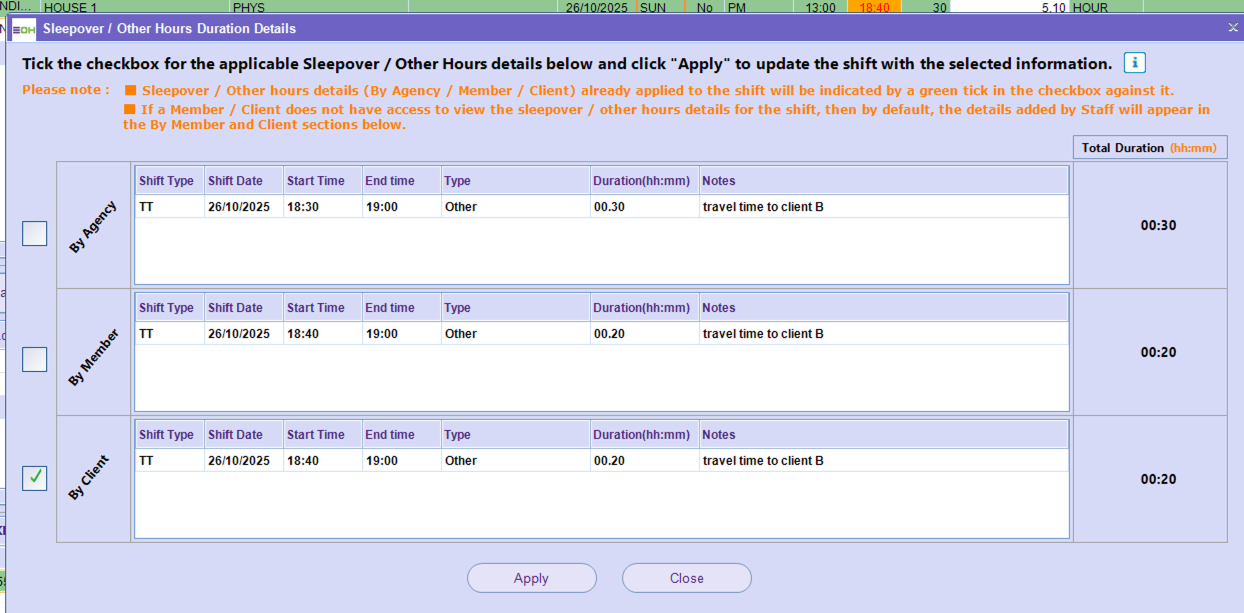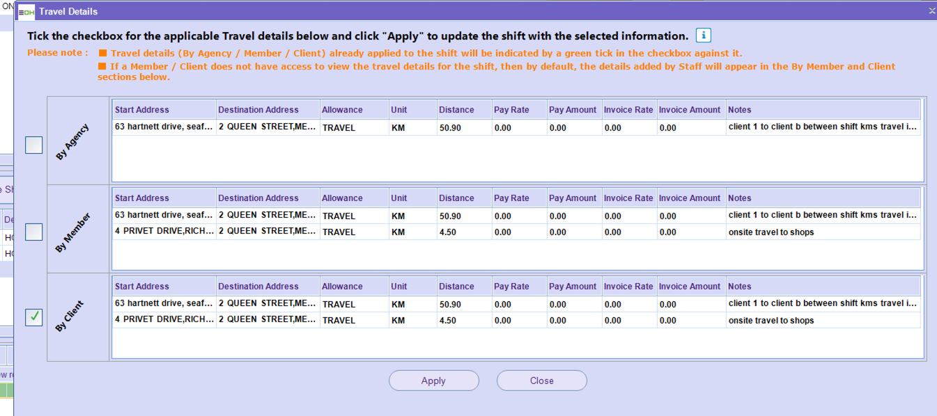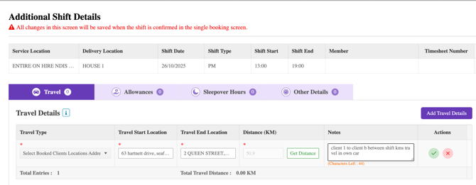 - If you select "Travel" and "Travel Allowance", You will be able to compare what allocations, member and client entered.