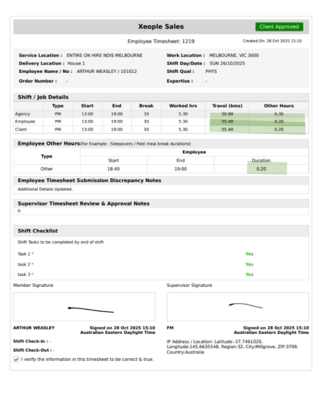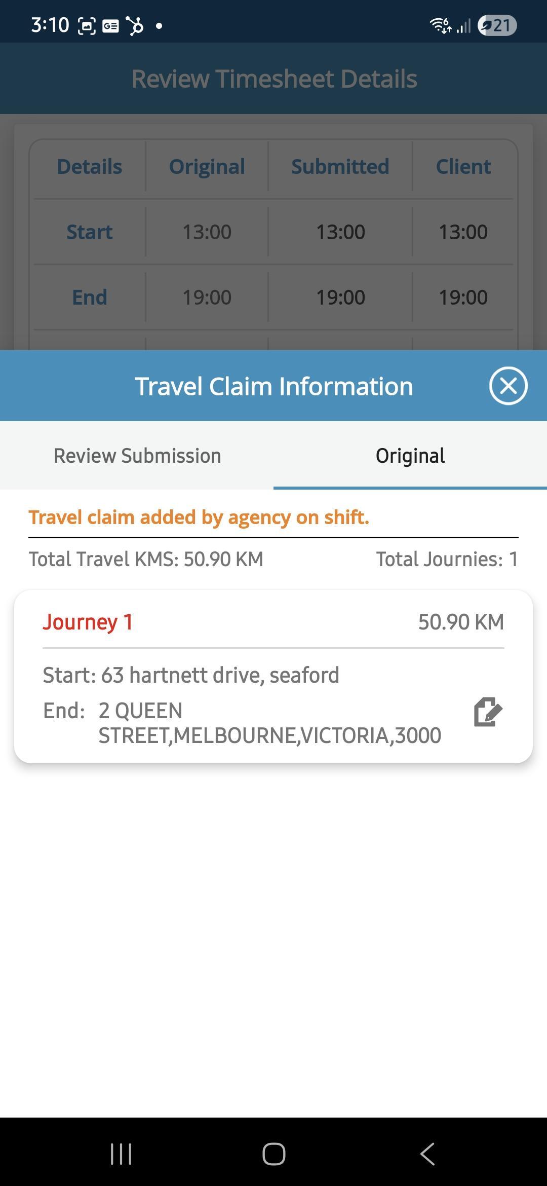 You can now see Both Travel KM are now there, as well as "Veiw Agency Details" is there to see what was approved - screenshot below