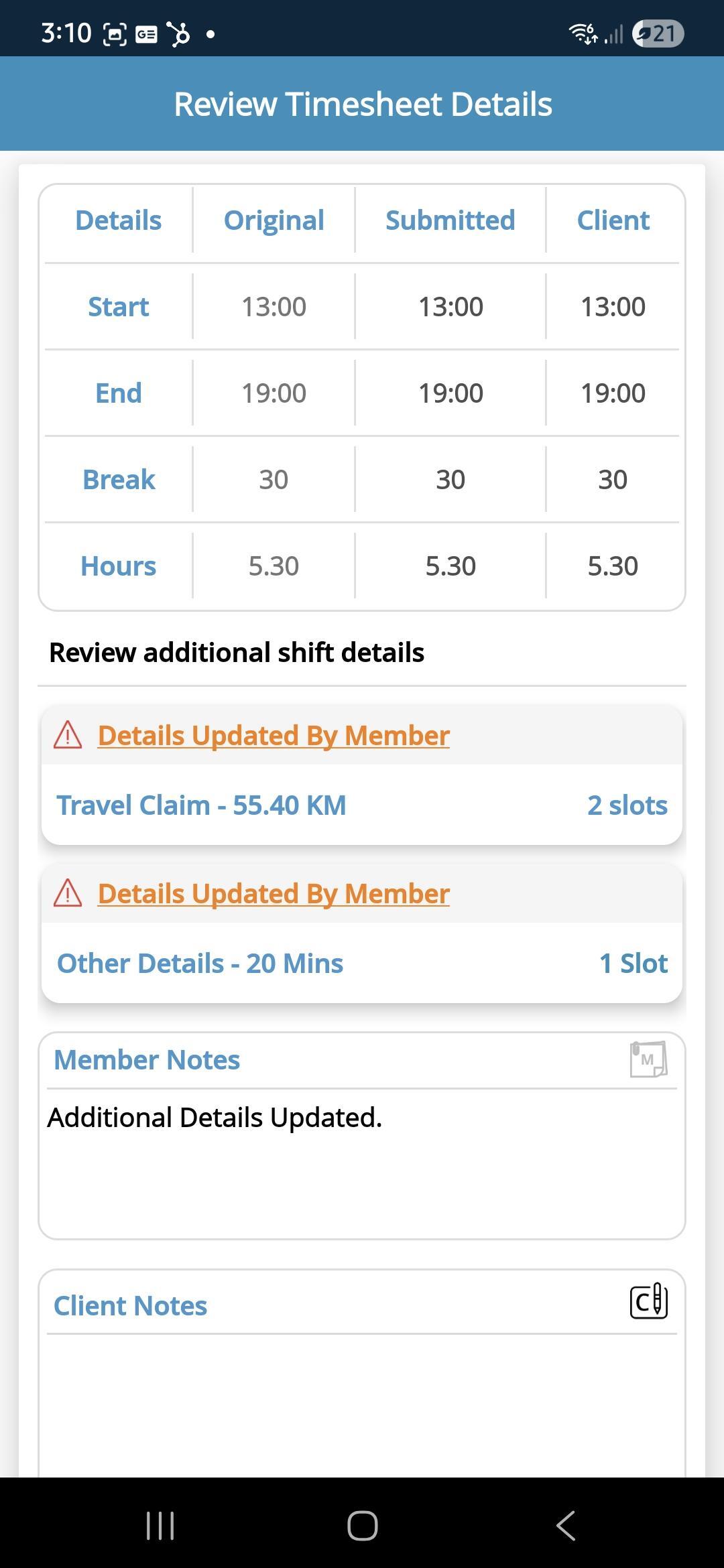 Finance will then review and process the travel time and kilometres submitted by members in the app or recorded in allocations, ensuring these details are accurately included in payroll.