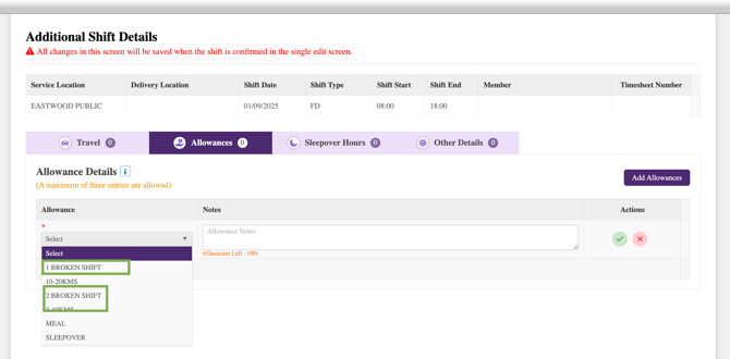 This allows allocators to select and apply the allowance when booking a shift.