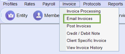 - Click on the ‘Email Invoices’ menu item from the Invoice menu.