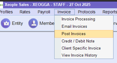 - Click on the ‘Post Invoices’ menu item from the Invoice menu.