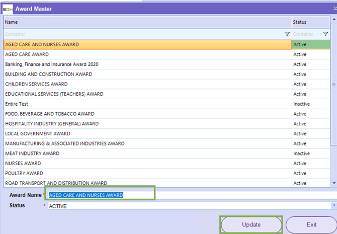 This now completes your set up of an Industry Award however, to complete the exercise of applying the award, you need to attach it to your relevant clients.