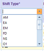 Again, you can either start typing your shift day or, you can use the drop down to select.