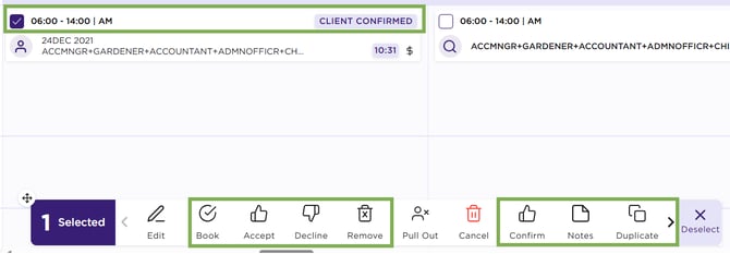 Shift Action Bar – Client Confirmed - Actions