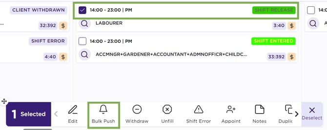 Shift Action Bar – Shift Release – Bulk Push