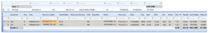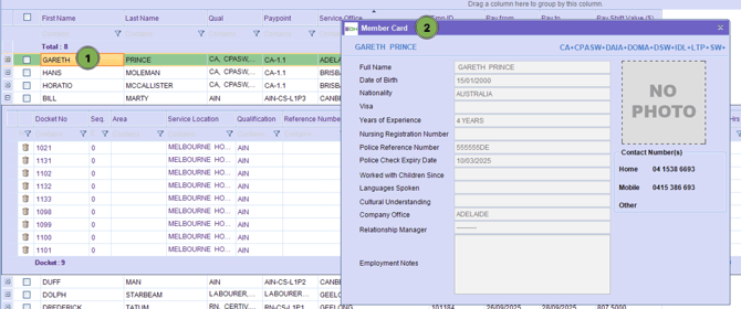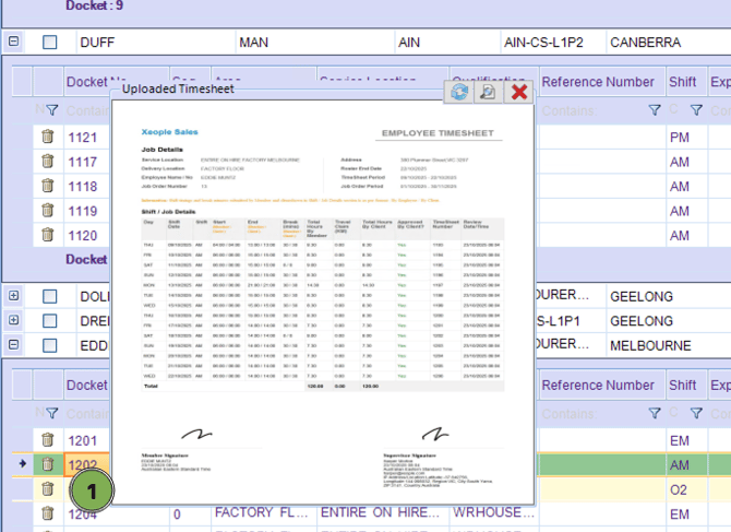 Hovering over the docket number in the member’s expanded shift list will display an image of the timesheet snap or the electronic timesheet (if these have been submitted to the system via the Member App or Staff App).