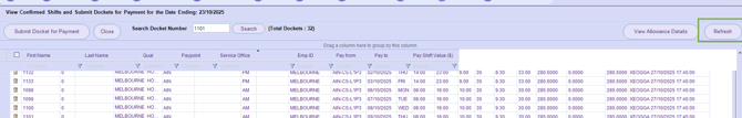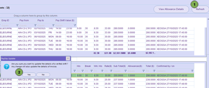 If these fields are updated, the ‘Refresh’ button should be clicked to save the changes. These changes will also be applied to the invoice component of the shift.