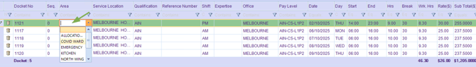 These fields are Area (or ‘Delivery Location’ of the shift), Shift Type, Start Time, End Time and Break.