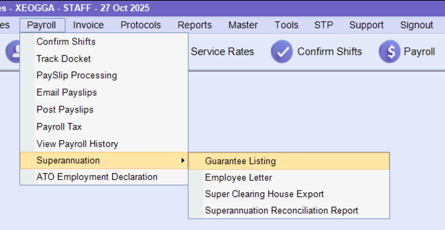 The Guarantee Listing Report provides a detailed listing of superannuation guarantee contributions for employees over a selected reporting period.