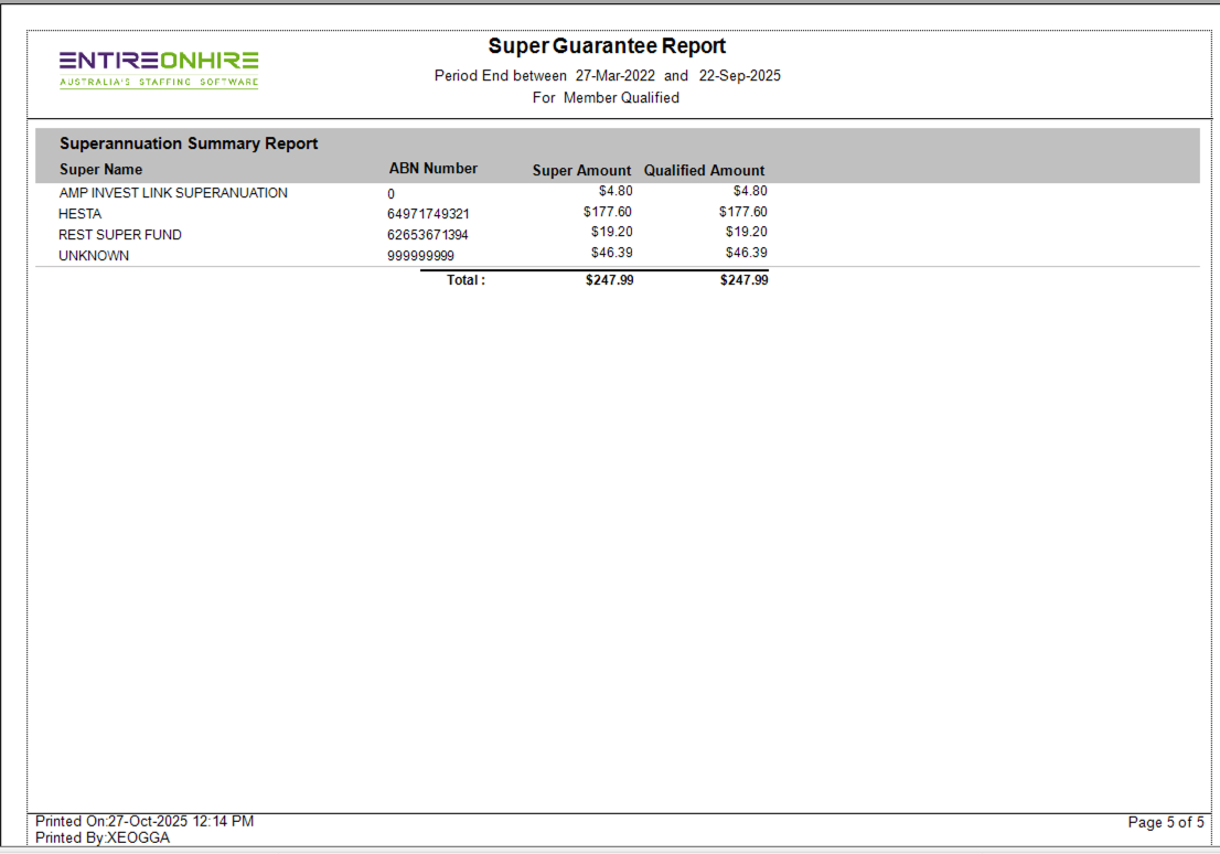 | Super Amount | The total SG contribution calculated for the employee during the selected period. |